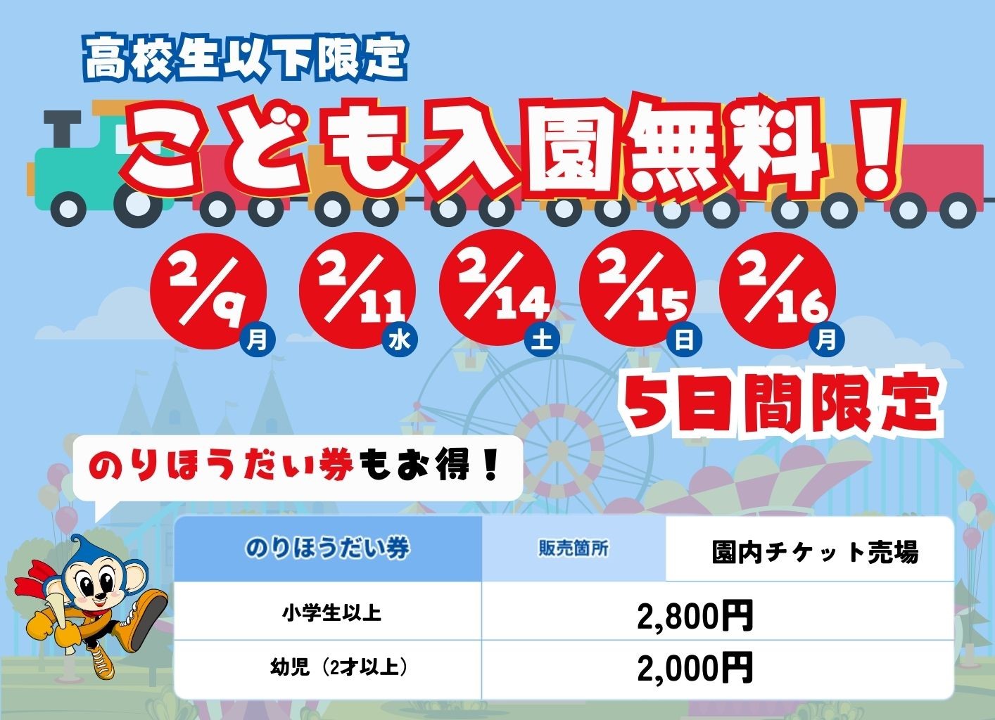 期間中は大人のワンデーパスポート(入園+のりほうだい券)が
