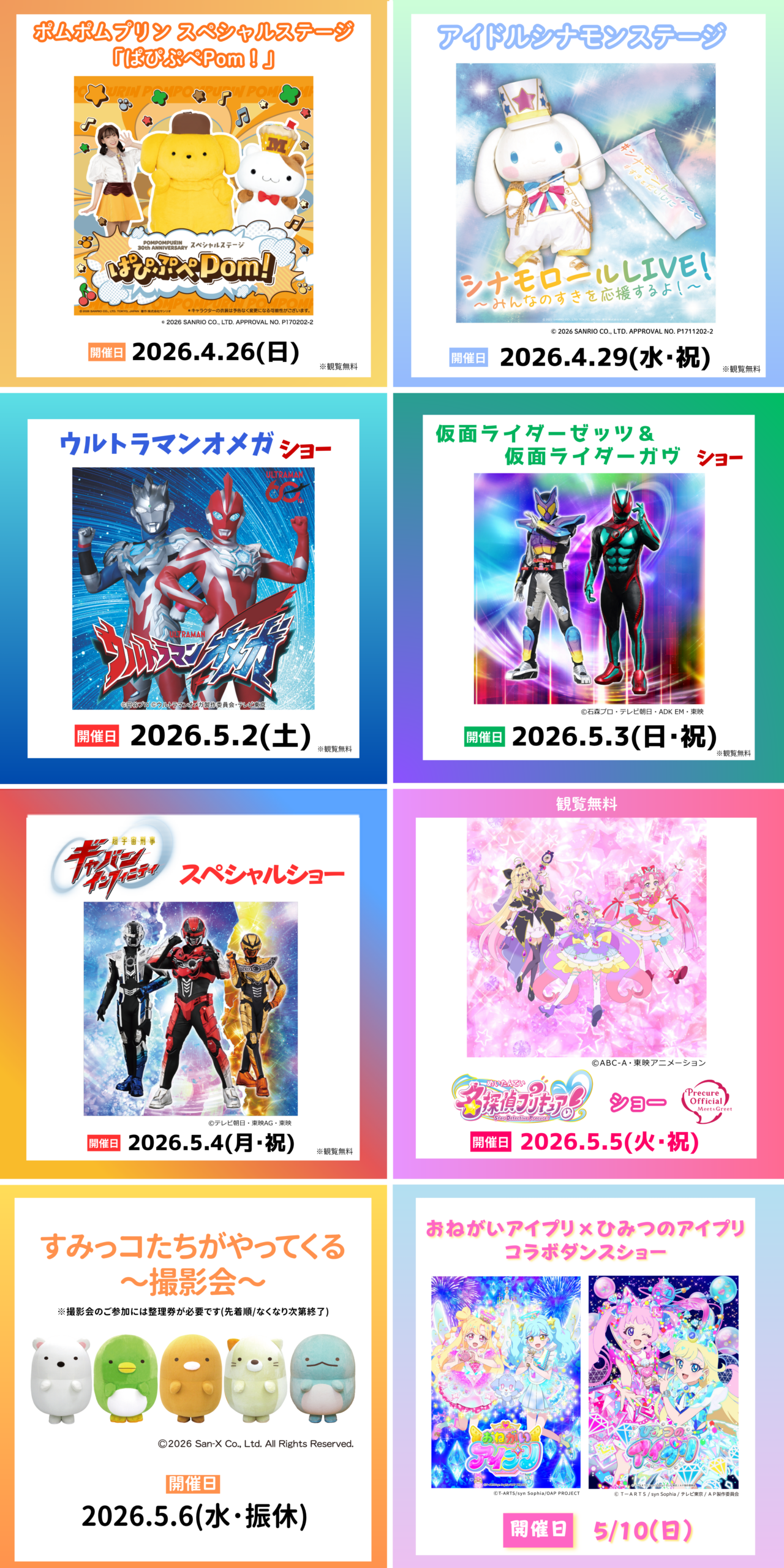 GW期間中、ご家族で楽しめるイベントを多数開催いたします!